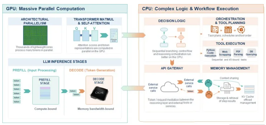 而 Agentic AI 带来了根本性变化:AI 的工作负载从 “单次响应生成”,扩展为 “多步骤工作流协调、工具调用、流程编排”,在这一场景下,CPU 计算时间开始主导总延迟,而非 GPU。文档中的市场数据也验证了这一变化: