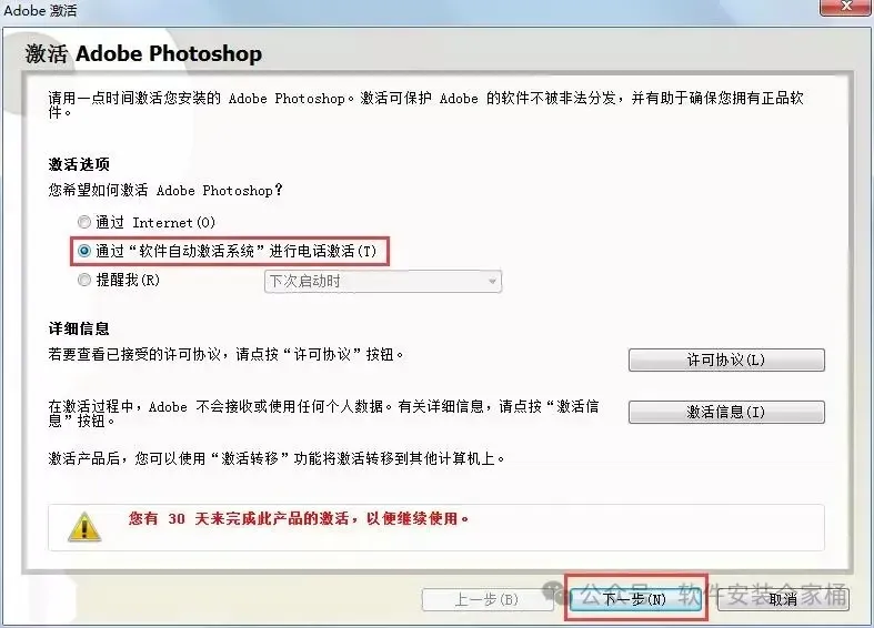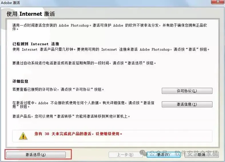 激活失败:按顺序操作:安装→破解→断网