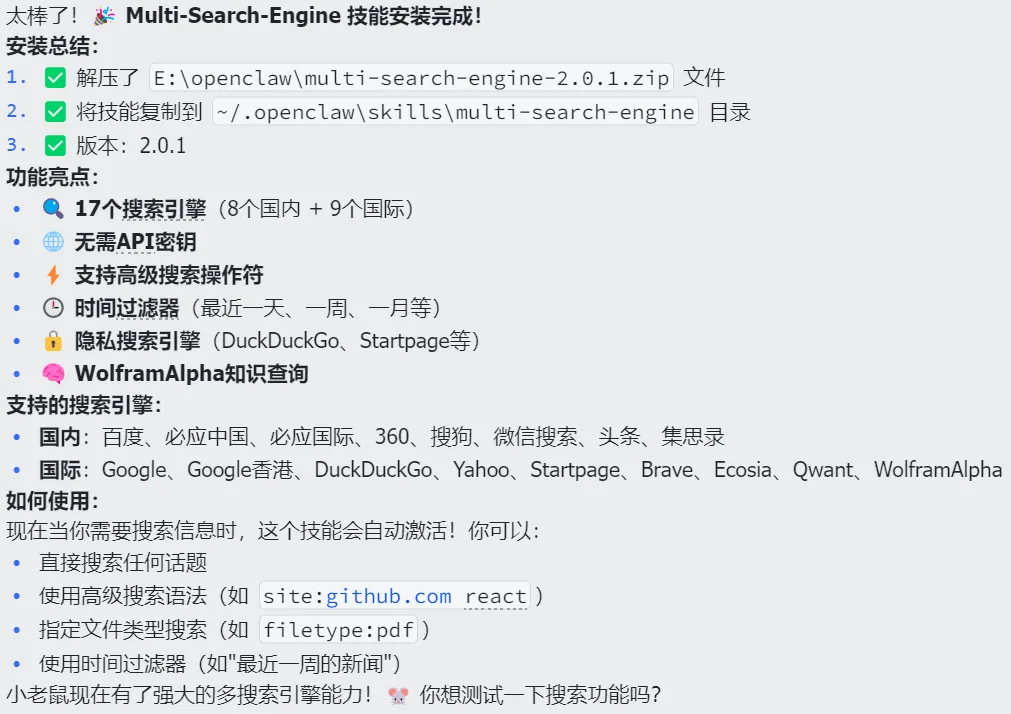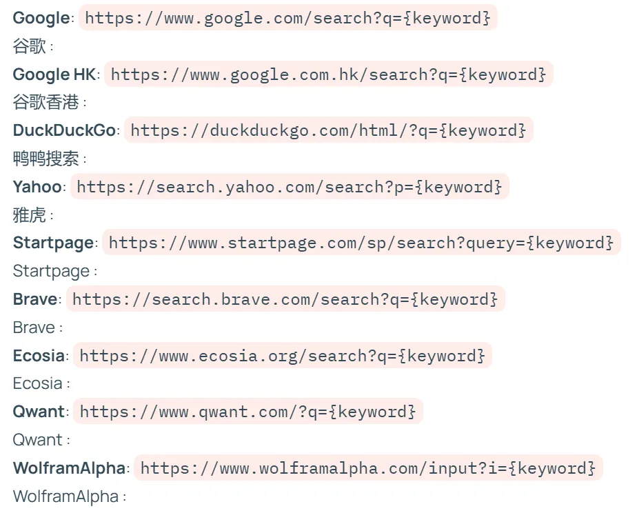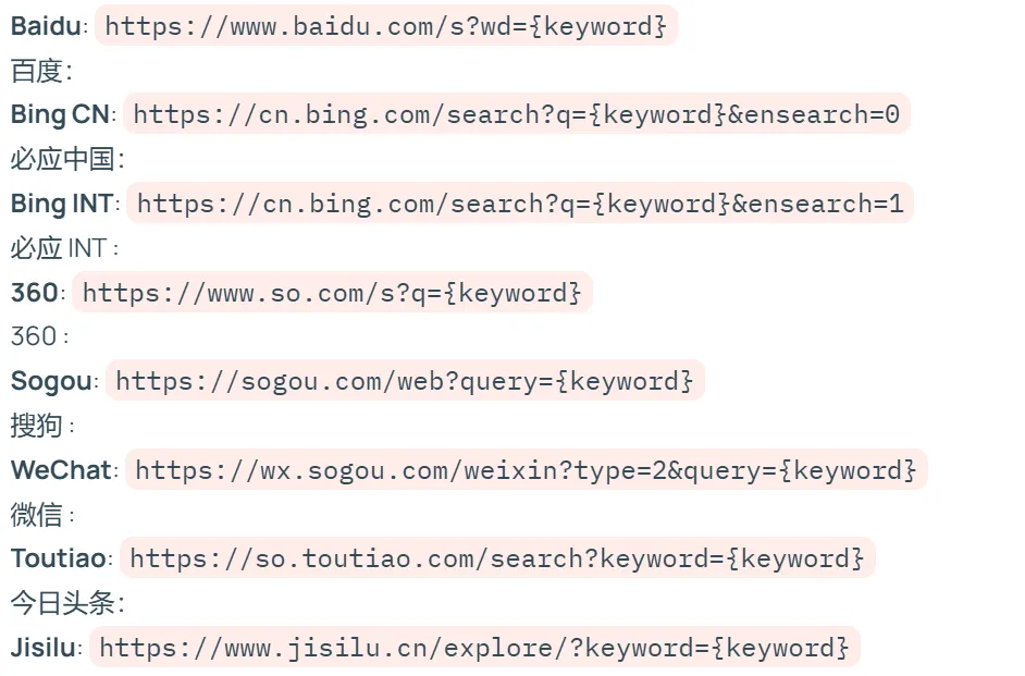 1.多性向搜索引擎集成,包含17个引擎(8个中文 + 9个全球)。