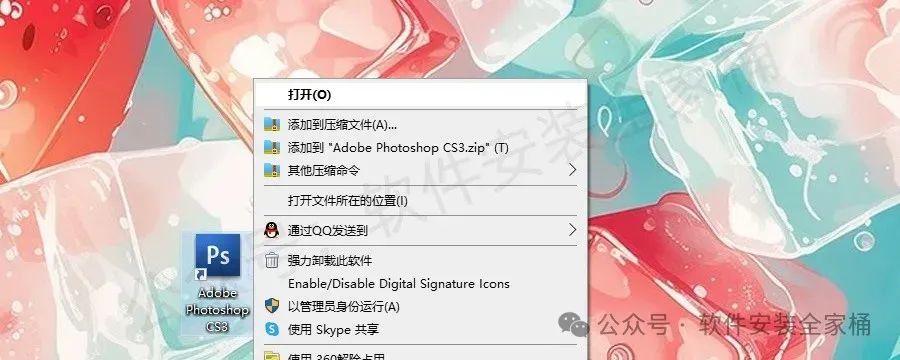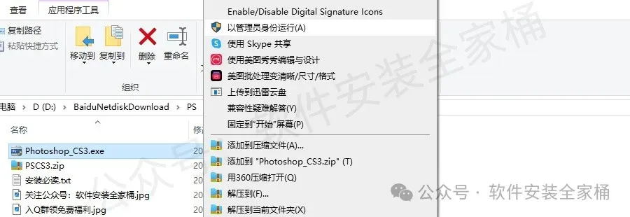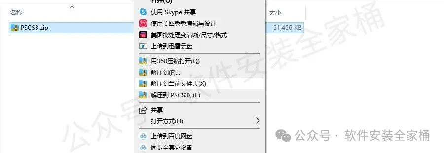 1.打开下载的PS CS3软件安装包,鼠标右击压缩包,选择【解压到PS CS3】。