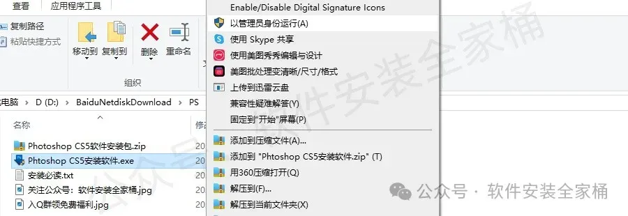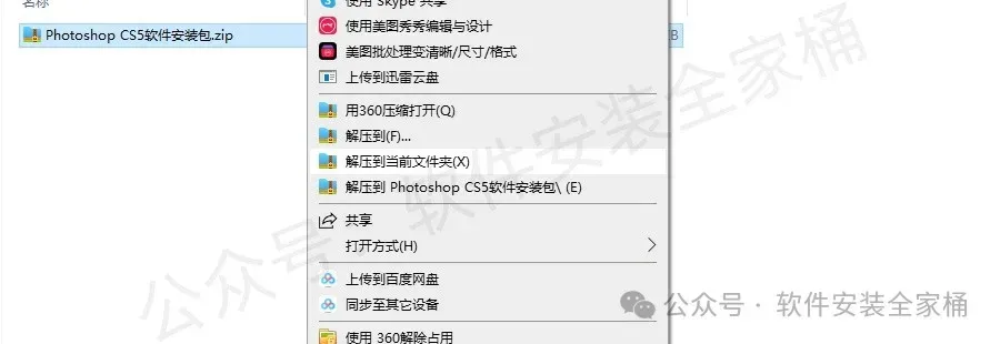 1.打开下载的PS CS5软件安装包,鼠标右击压缩包,选择【解压到PS CS5】。