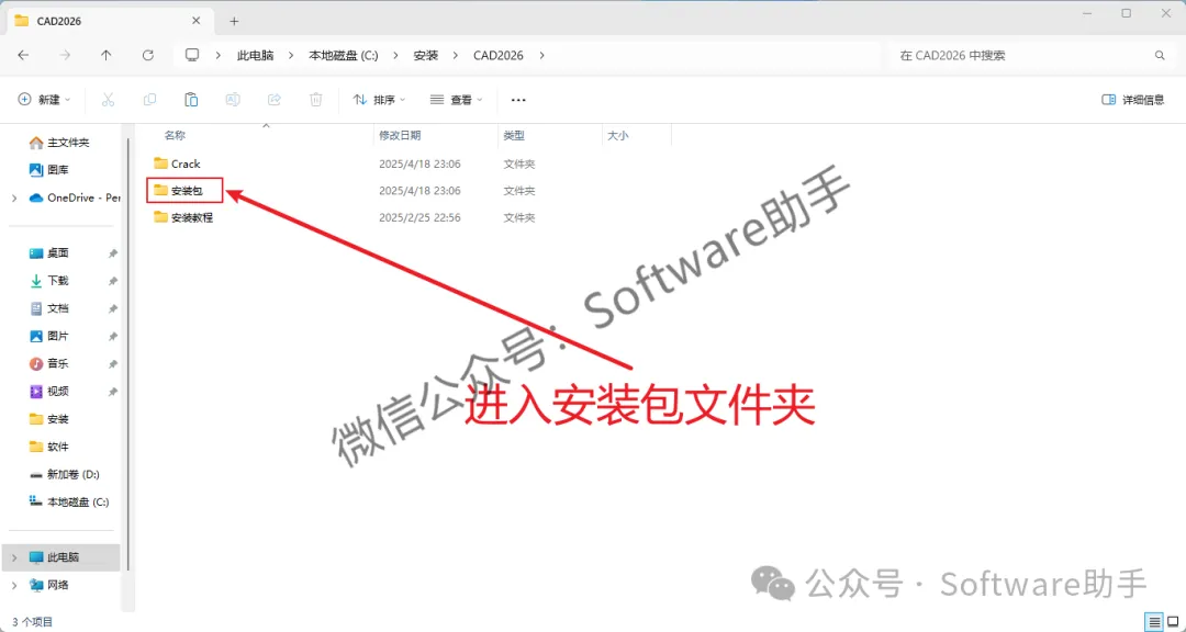 2.进入解压好的文件夹里,双击打开【安装包】文件夹