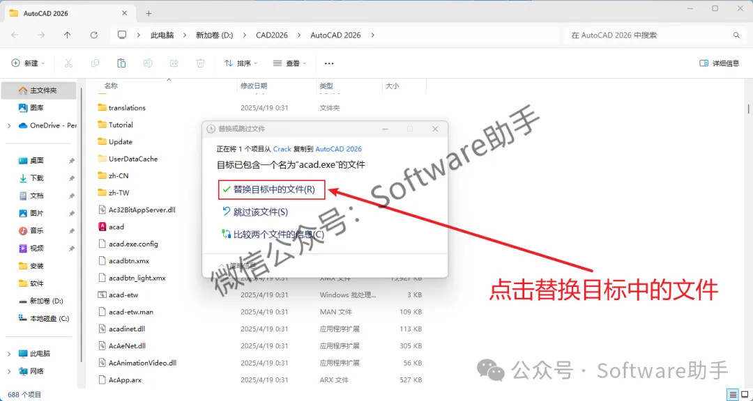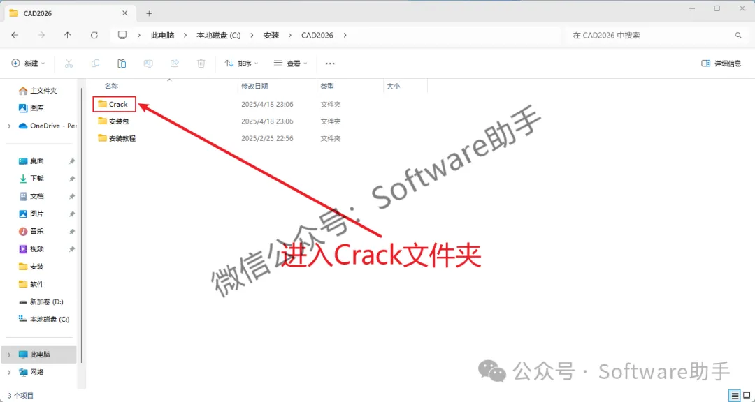 6.先选择你想要将软件安装的盘符,比如D盘。再点击【新建文件夹】,将文件夹命名为:CAD2026,并且选中它,最后点击【选择文件夹】。