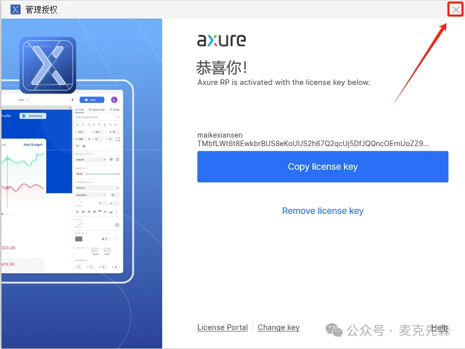 21,回到Axure RP 10软件界面,将Keygen 程序的License和key一一对应输入到软件内,然后点击【提交】。