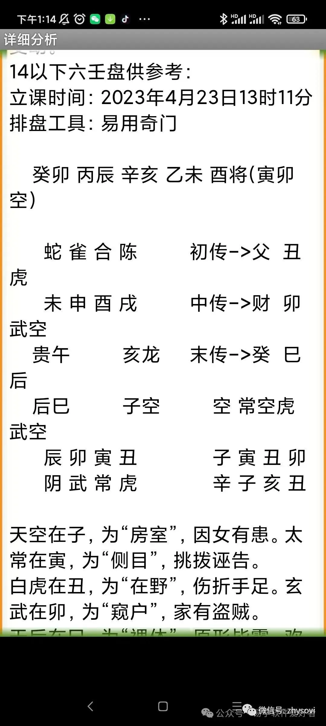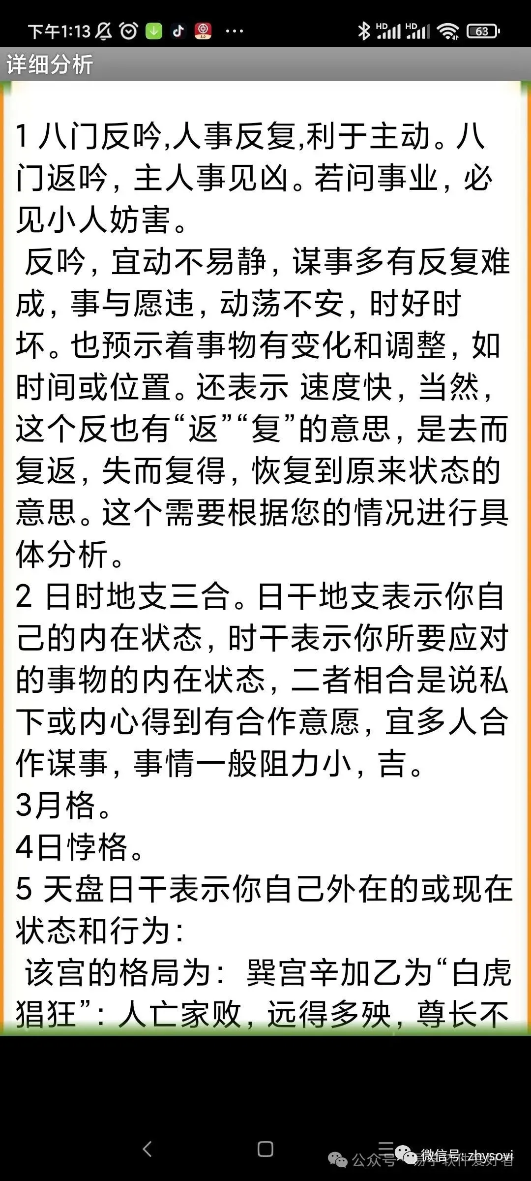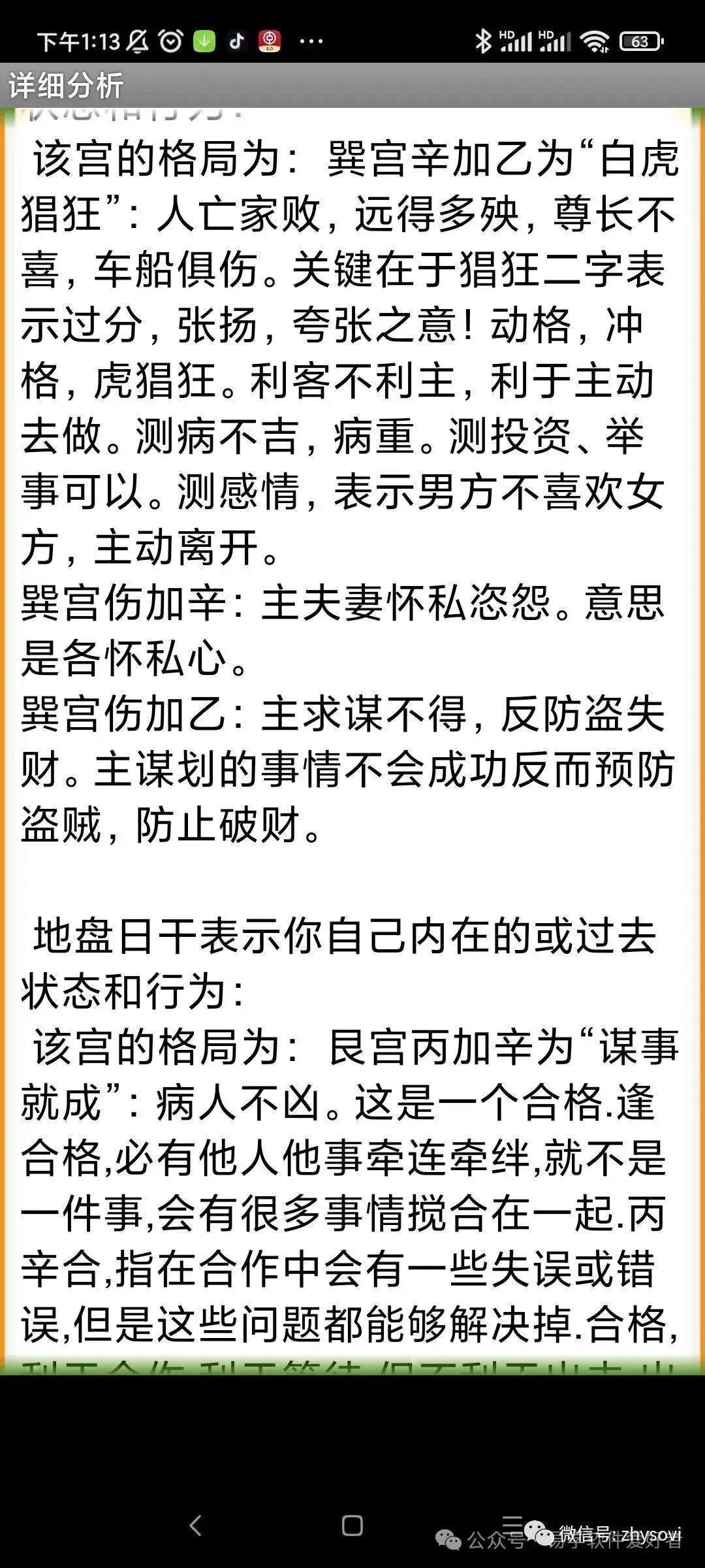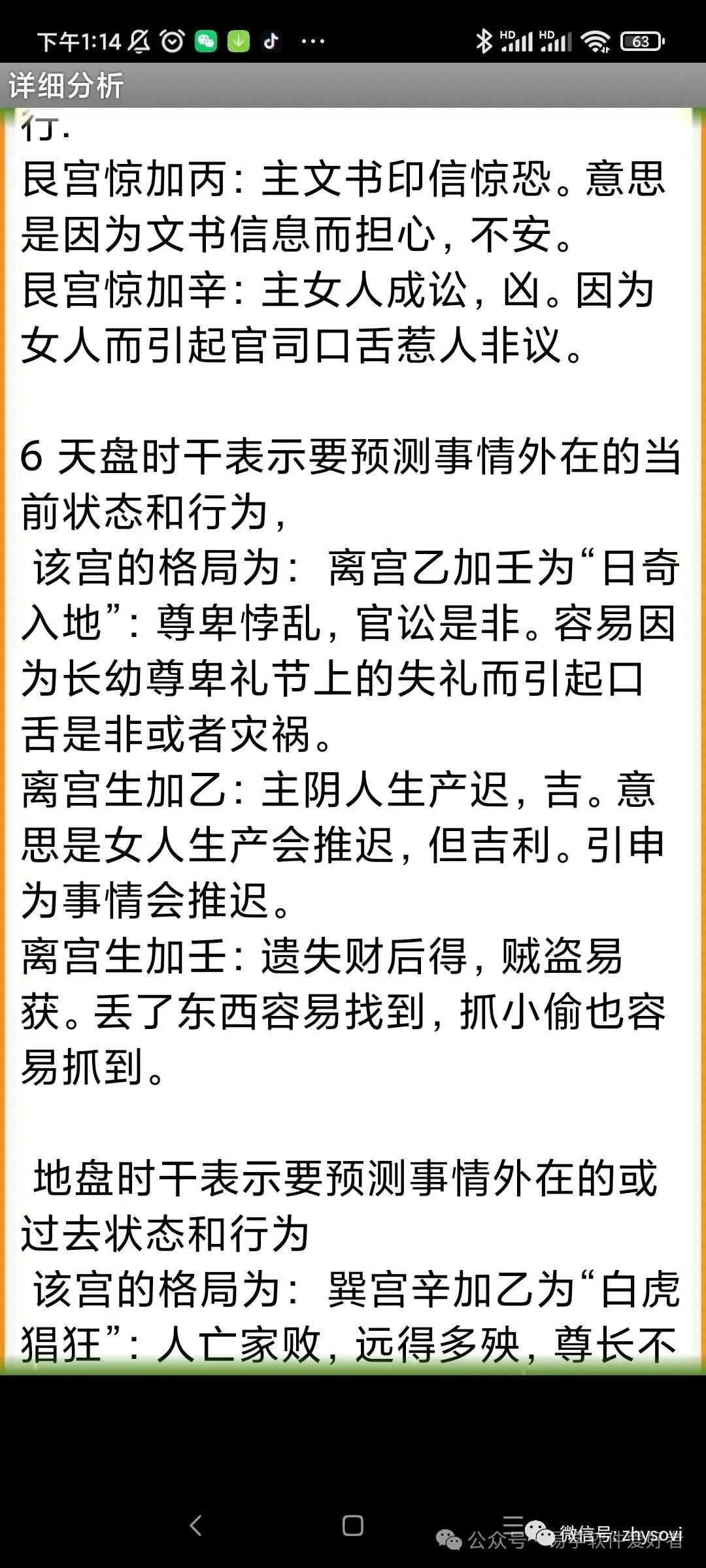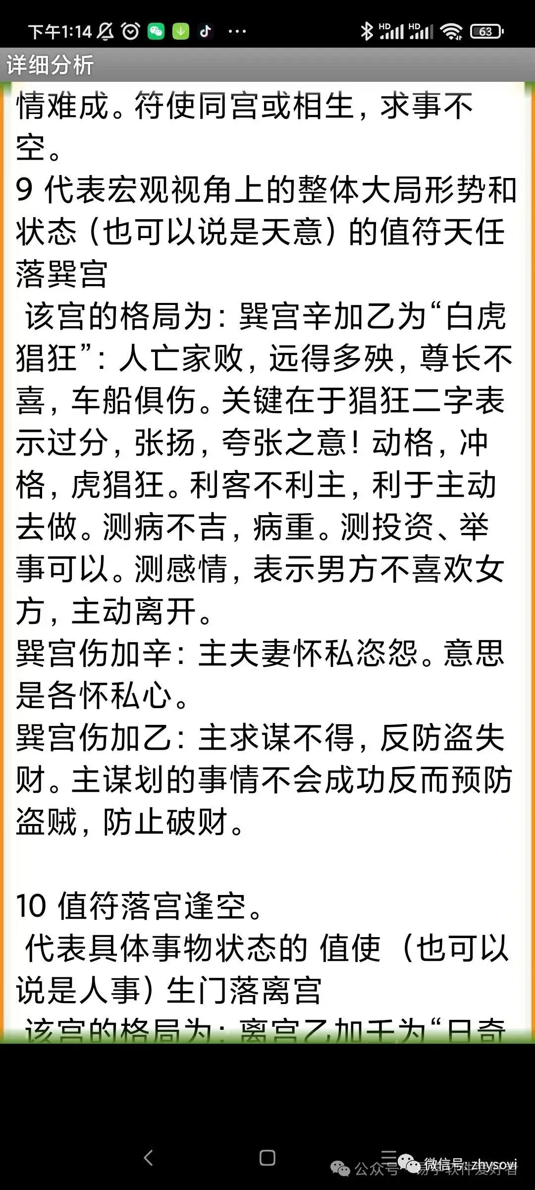 3、落宫分析内容包括:比如包括神,星,门,三奇六仪,宫的解释和象意延伸,门门克应格局的解释,门干格局的解释,天盘干和地盘干的格局解释,门、星、干入墓的自动提示,干击刑的自动提示,天地盘干的十二长生提示和解释,贵人位的提醒,马星的自动提示和解释,日空和时空的自动提示和解释,三诈五假以及各种遁格(天遁,地遁…..)的自动提示和解释,还有落宫出现三合时的自动提示和解释等等