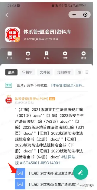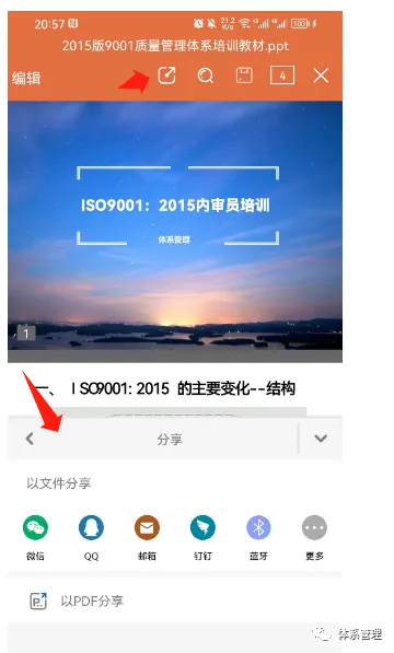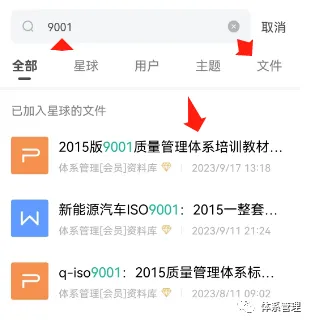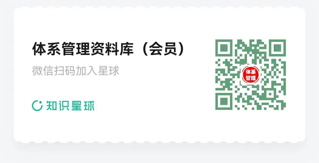 粉丝必读:体系管理共享资料,自助下载教程!体系管理资料库-加入方法加入:体系管理资料库https://t.zsxq.com/AtAtt(各体系文件/表单、培训教材等-编辑档为主)加入后每日共享资料均可自由下载!体系管理资料库-资料获取方法【方法一】电脑网页版(强烈推荐此方法)打开电脑网页:https://t.zsxq.com/AtAtt2.点击登录网页版3.点击登录网页版,然后用微信扫一扫,就可以登录。4.点击文件名,就可以下载!5.点击顶部搜索框,输入想要的内容关键字(例如9001、4001),点击🔍按钮,可以进行文件搜索哟。【方法二】安装APP下载:APP(在手机应用商城里面搜索:知识星球)2.安装完成后,点击微信登录!3.点击搜索框,输入关键字(如:9001、4001),就可以搜索相应的内容了!4.点击文件名---点击右上角三个点---点击用其他应用打开---就可以分享5.点击🔍按钮,还可以进行文件搜索哟!【方法三】微信小程序(此方法不推荐)找到知识星球,打开就可以看到我们的星球,点击文件即可查阅共享内容。体系管理-联系我们如需帮助请联系:日常运营微信ou8883、会员客服ak5989点下方阅读原文,获取精彩内容!