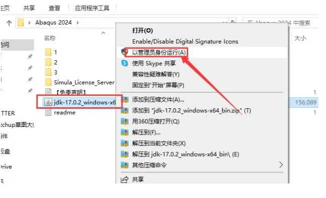 2. 选择jdk-17.0.2_windows-x64_bin鼠标右键以管理员身份运行