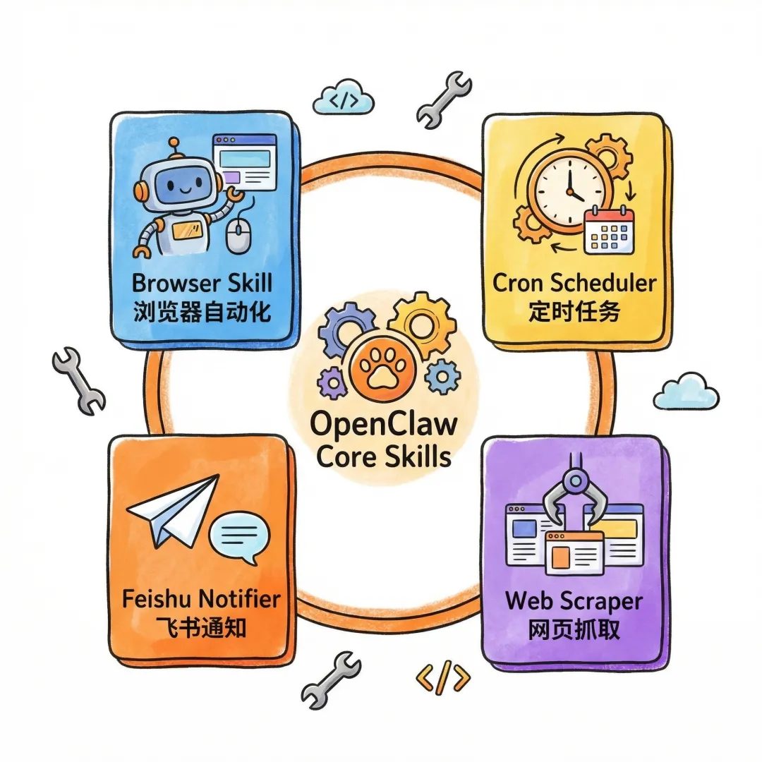 OpenClaw通过模块化的Skills(技能)系统实现库存管理自动化。以下是核心技能配置: