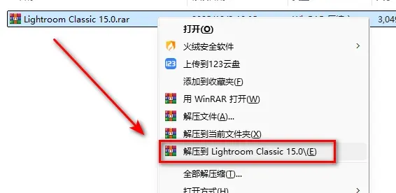 1.鼠标右键解压到“Lightroom Classic 15.0”