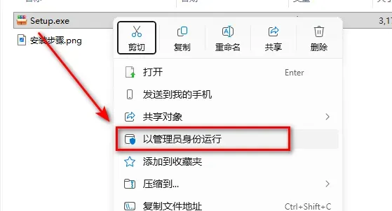2.选中Setup,鼠标右键选择“以管理员身份运行”