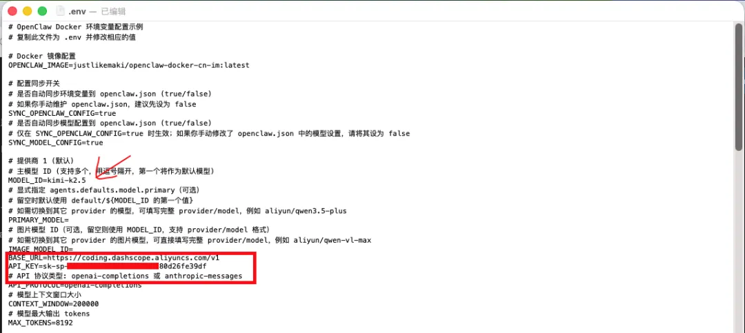 1.使用你顺手的文本编辑器打开 .env 文件,我们需要修改几个关键参数