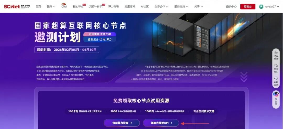福利插播:现在前往超算互联网平台(https://www.scnet.cn/)注册参加活动,即送 2000 万 token