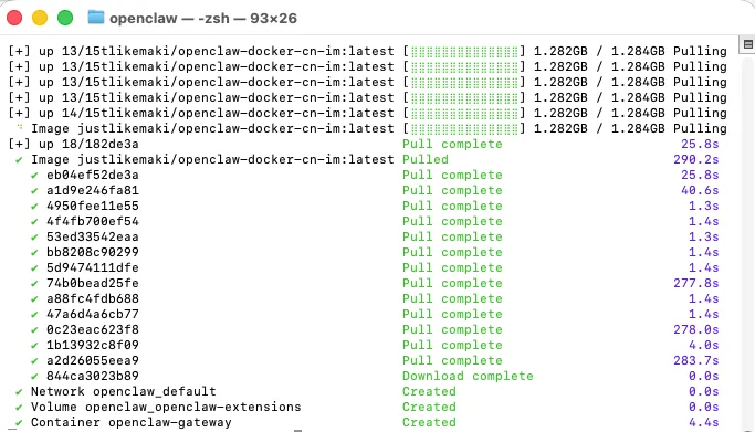 # 1.下载 docker-compose 配置文件 (注意 O 是大写)curl -O https://raw.githubusercontent.com/justlovemaki/OpenClaw-Docker-CN-IM/main/docker-compose.yml