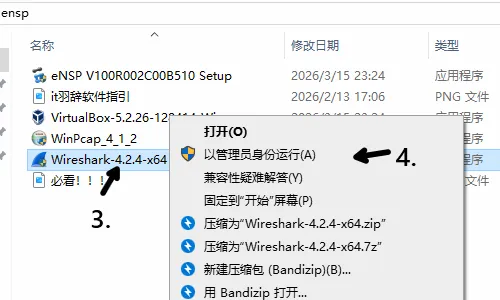3.点击Wireshark安装包,4.右键以管理员身份运行