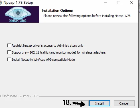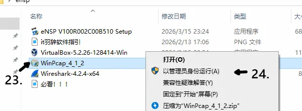 23.点击安装WinPcap,24.右键以管理员身份运行