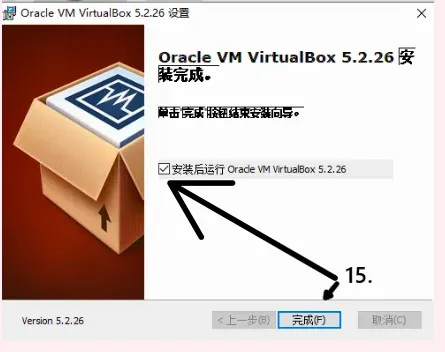 43(15).取消勾选并点击完成,VirtualBox安装完成