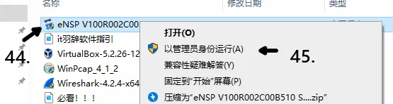 44.点击安装ensp,45.右键以管理员身份运行