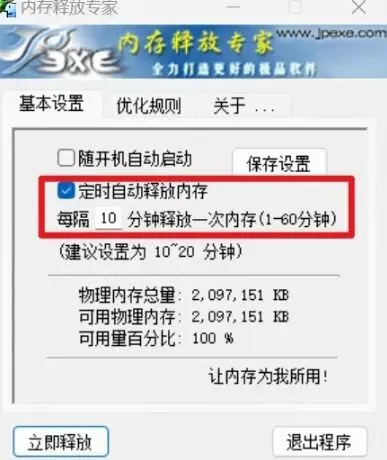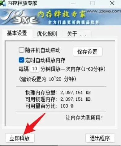 使用的时候,点击 【立即释放】,就可以进行内存清理。