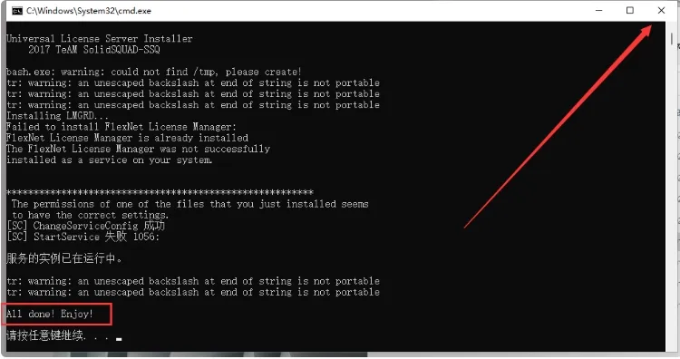 9. 等待出现【A11 done! Enjoy!】提示后,关闭该窗口。