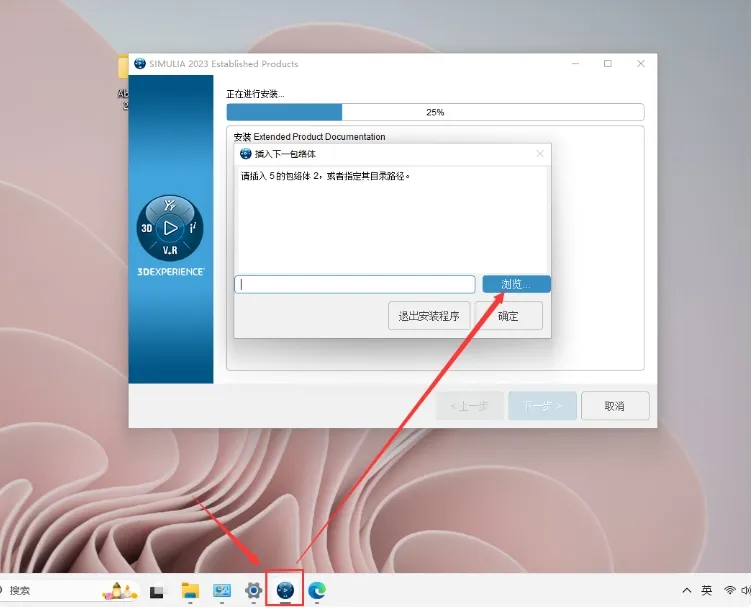 33. 在任务栏中点击安装程序图标,选择“浏览”进入安装路径。