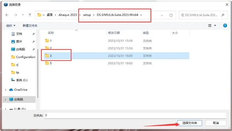 50. 选择【setup\DS.SIMULIA.Suite.2023.Win64\3】文件夹。