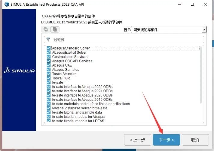 14. 在SIMULIA 2022安装向导中,点击“下一步”继续。