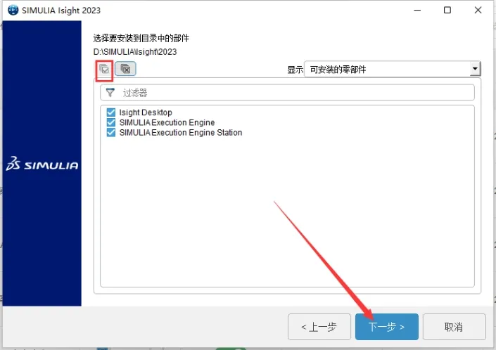21. 在部件选择界面,勾选所有部件,然后点击“下一步”。