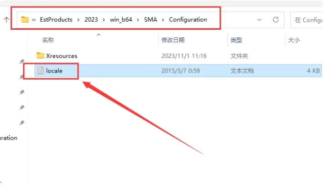 66. 打开路径:D:\SIMULIA\EstProducts\2023\win_b64\SMA\Configuration,找到并打开“locale”文件。