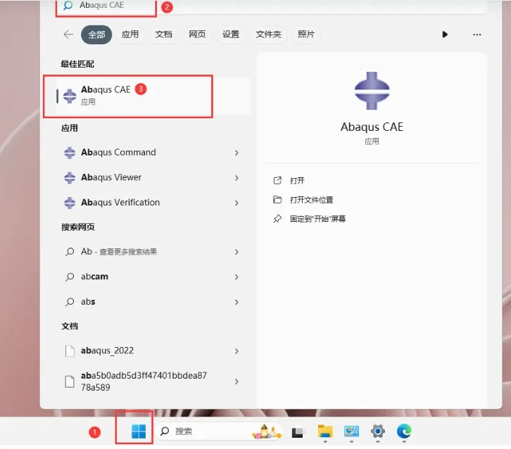 68. 在开始菜单中找到并打开Abaqus CAE(Windows 10用户可以在左下角开始菜单中找到,Windows 11用户可以在中间底部的开始菜单中找到,或通过搜索打开)。软件启动后即可使用。