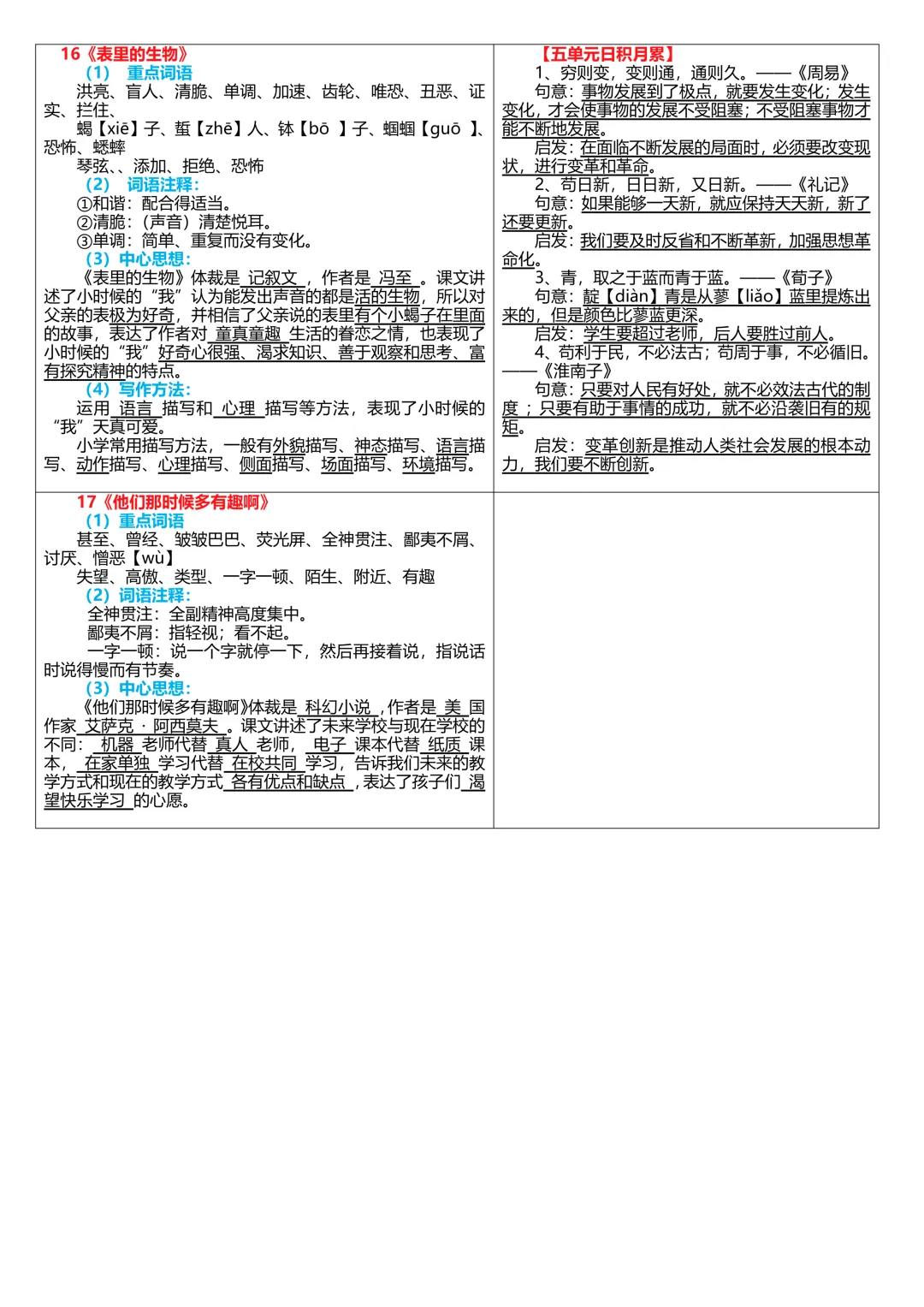6下语文-课内重点课课贴(6页)(文末下载)通过网盘分享的文件:【新版】6下语文-课内重点课课贴(6页).pdf链接: https://pan.baidu.com/s/1EKiidihxNgcRxlGMGMqxzw?pwd=pujd 提取码: pujd --来自百度网盘超级会员v6的分享