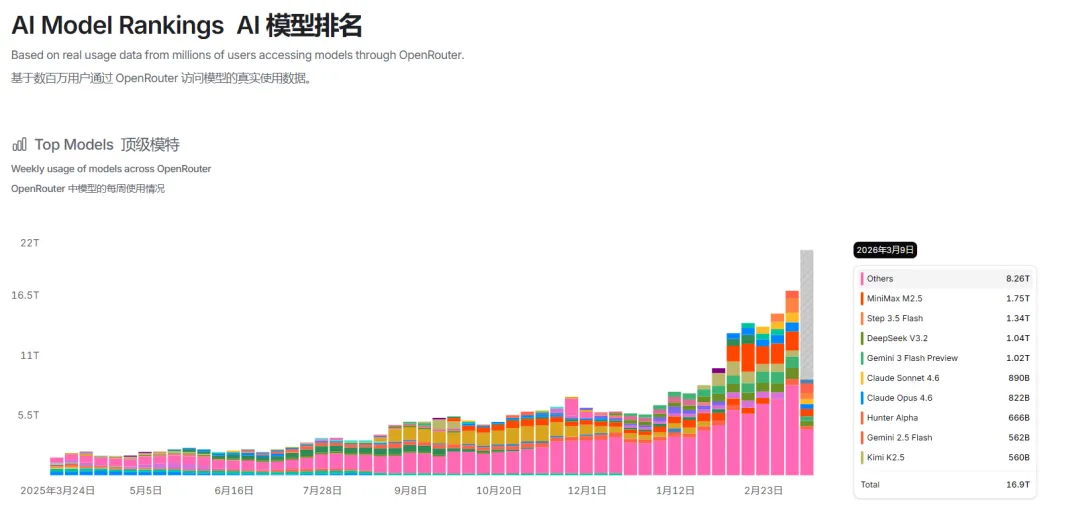 如果你最近打开OpenRouter的排行榜,你会发现画风从以前的追赶变成了中式霸榜。