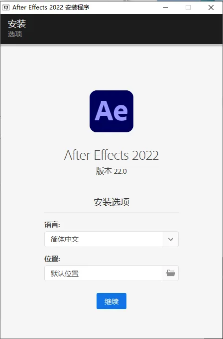 安装步骤1.鼠标右击【Ae2022(64bit)】压缩包(Win11系统的用户先点击“显示更多选项”)选择【解压到 Ae2022(64bit)】。2.安装包解压中……3.解压完成后,双击打开解压后的【Ae2022(64bit)】文件夹。4.鼠标右击【Set-up】选择【以管理员身份运行】。5.点击【文件夹图标】,点击【更改位置】。6.①点击需要安装的磁盘(我这里选择D盘,不建议安装在C盘);②点击【新建文件夹】;③选择并将新建的文件夹重命名为【Ae】;④点击【确定】。7.回到软件安装界面,点击【继续】。8.软件安装中……9.安装成功,点击【关闭】。10.双击桌面【Adobe After Effects 2022】图标启动软件。11.安装成功!软件大小:2.15G
