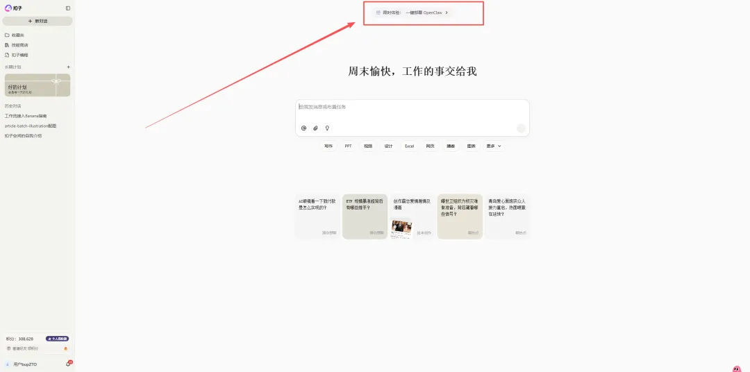 方式一:官网首页顶部,点击“限时体验:一键部署 OpenClaw”横幅,直接进入部署页面;