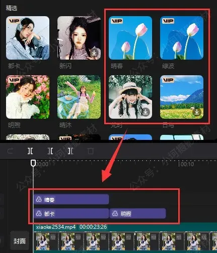 任选几个会员素材加入轨道