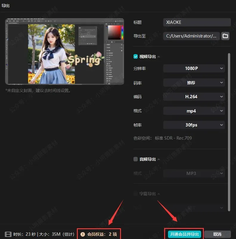 否则使用过会员素材无法导出
