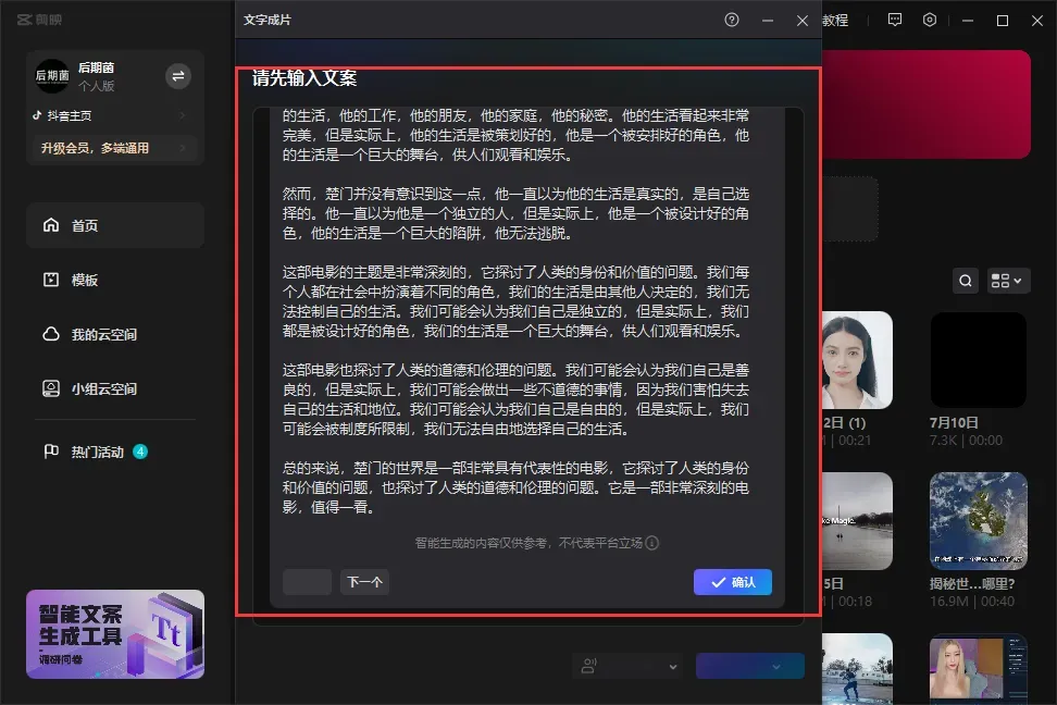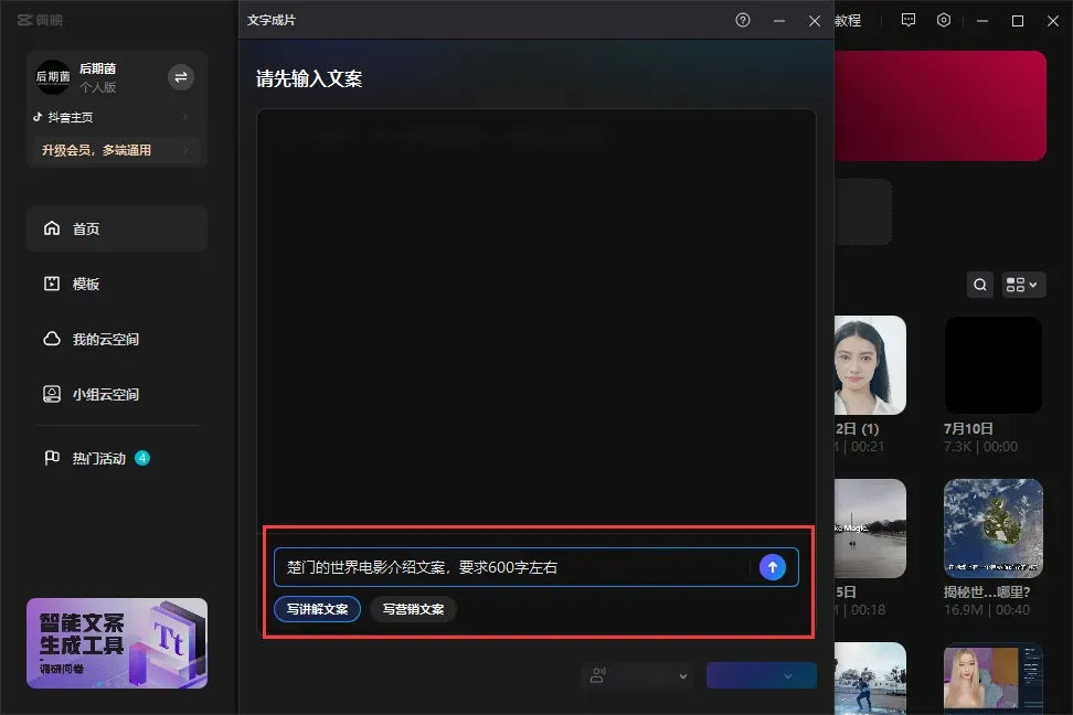 AI智能写文案,讲解文案、营销文案都能轻松一键搞定!再配合文字成片功能,太爽了!