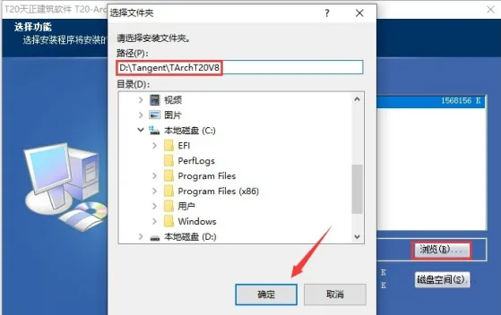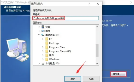 4.点击【浏览】,修改路径地址中的首字符C可更改安装位置,本例安装到D盘,点击确定。