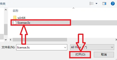 8.找到并选择:【license.lic】,点击【打开】。