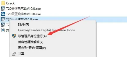 2.右键以管理员身份运行需要安装的天正产品(如:天正建筑)。