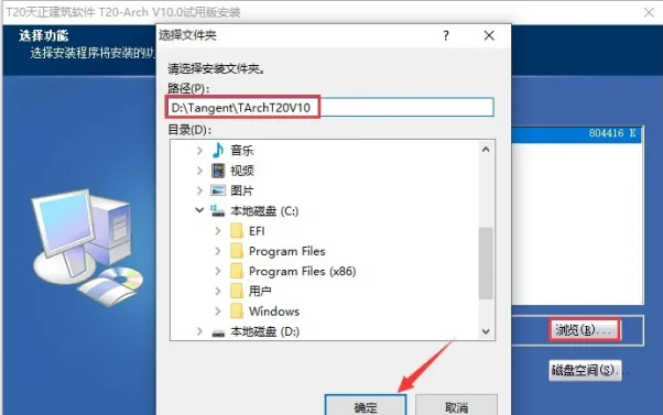 4.点击【浏览】,修改路径地址中的首字符C可更改安装位置,本例安装到D盘,点击确定。