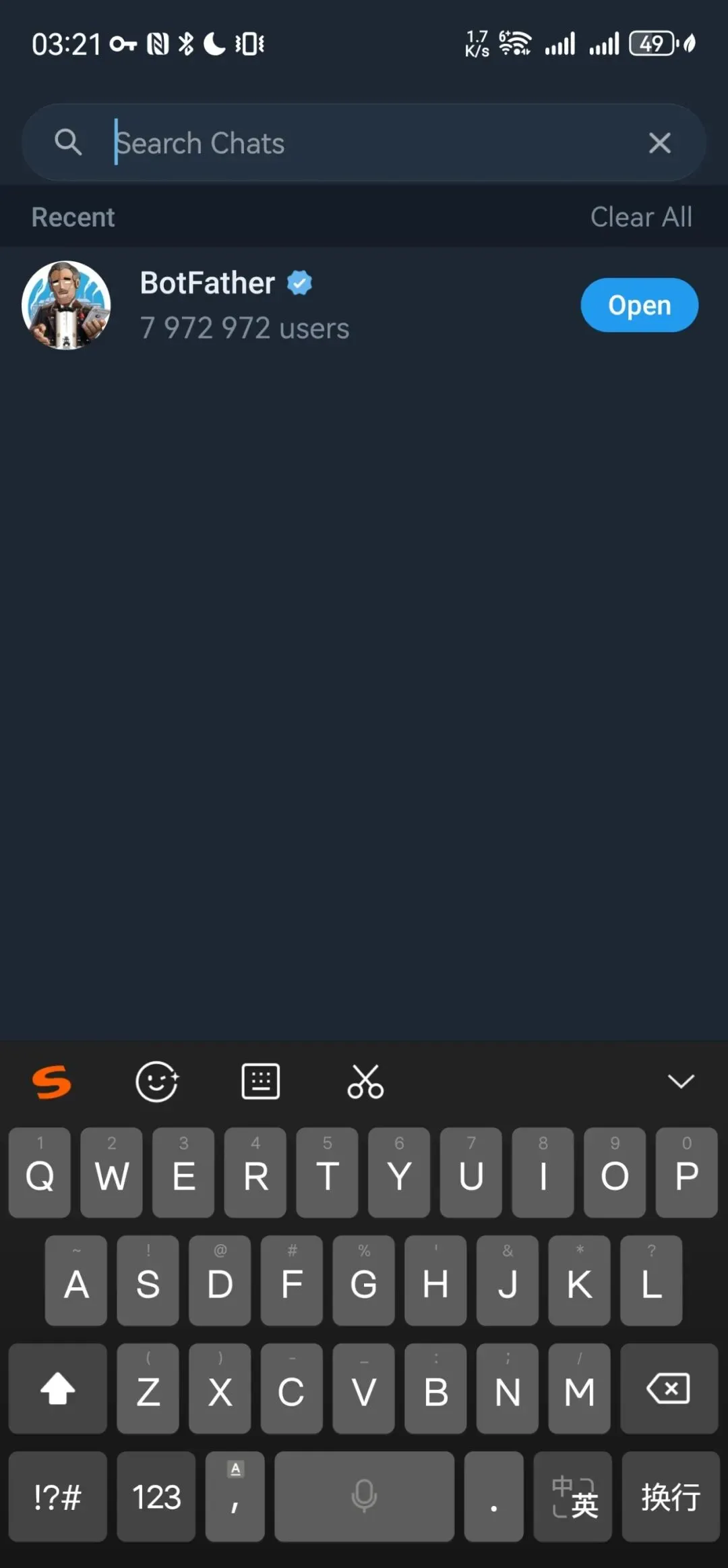 手机上打开T~ APP(如果不懂就进群讨论吧,仅限医学生)搜索 BotFather(蓝色认证),发送 /newbot,依次输入显示名称和用户名(必须以 bot 结尾)后获取bot的token(可理解为api)。