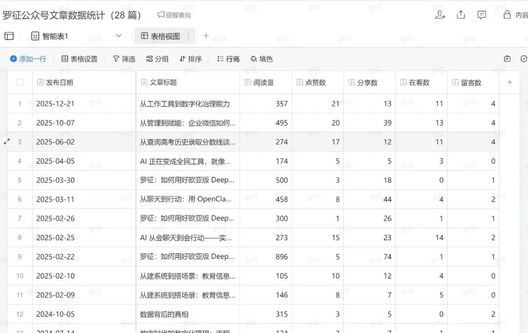 比如:👉自动读取公众号统计数据,并写入企业微信智能报表进行分析
