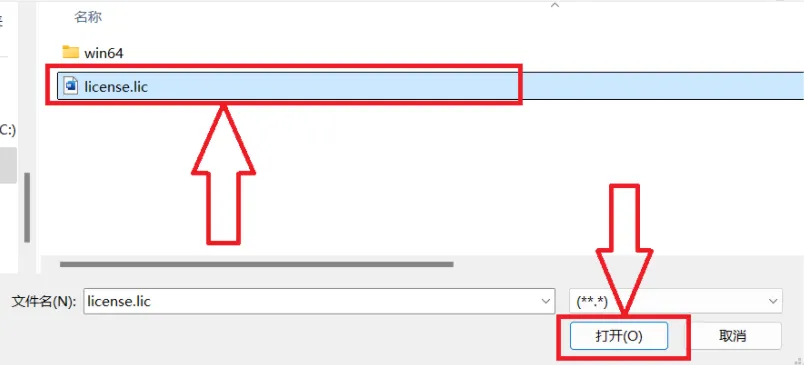 8.找到并选择:【license.lic】,点击【打开】。