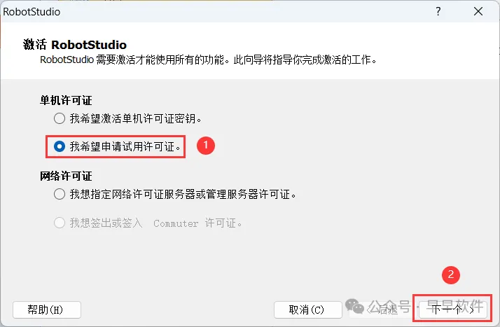 15、勾选【我希望申请使用许可证】,再点击【下一个】