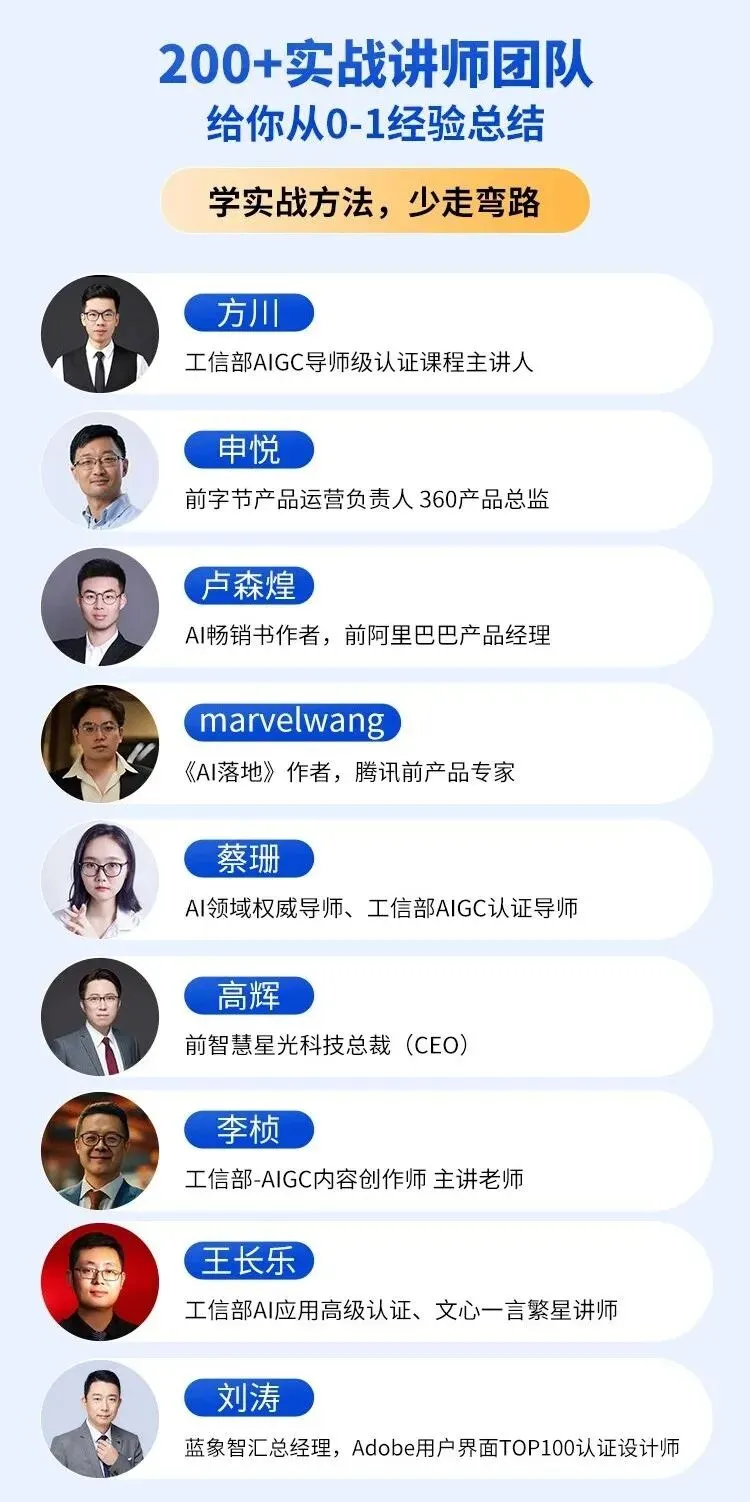 有工信部AI导师、字节/百度前大厂专家、AI工具官方讲师等,均已拿到过实操结果,沉淀了一套可复制、能上手的方法论。