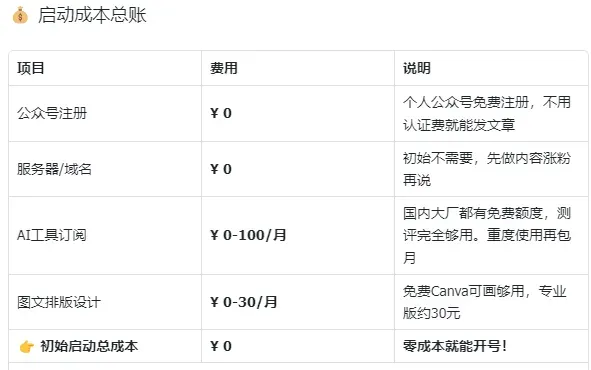 再说成本。户部给了一张非常清晰的账单,初始启动0成本就能开号。