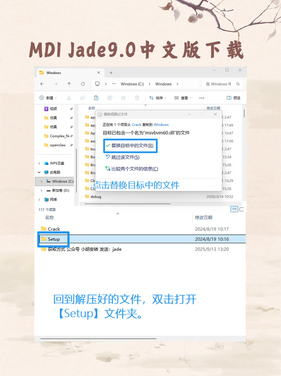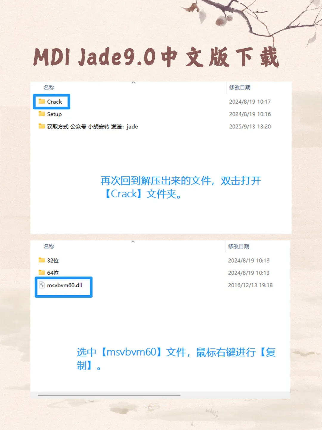 1. 二次补丁:再次复制Crack文件夹内的msvbvm60文件。
