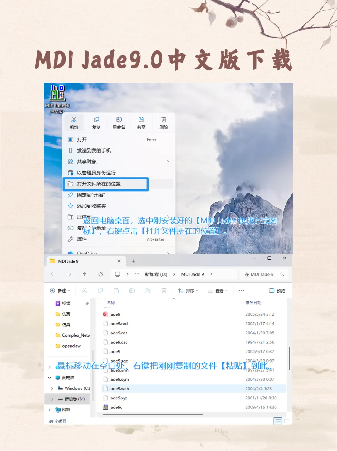 2. 注入根目录:右键桌面MID Jade9图标 ->【打开文件所在的位置】,将文件粘贴到该安装根目录下。