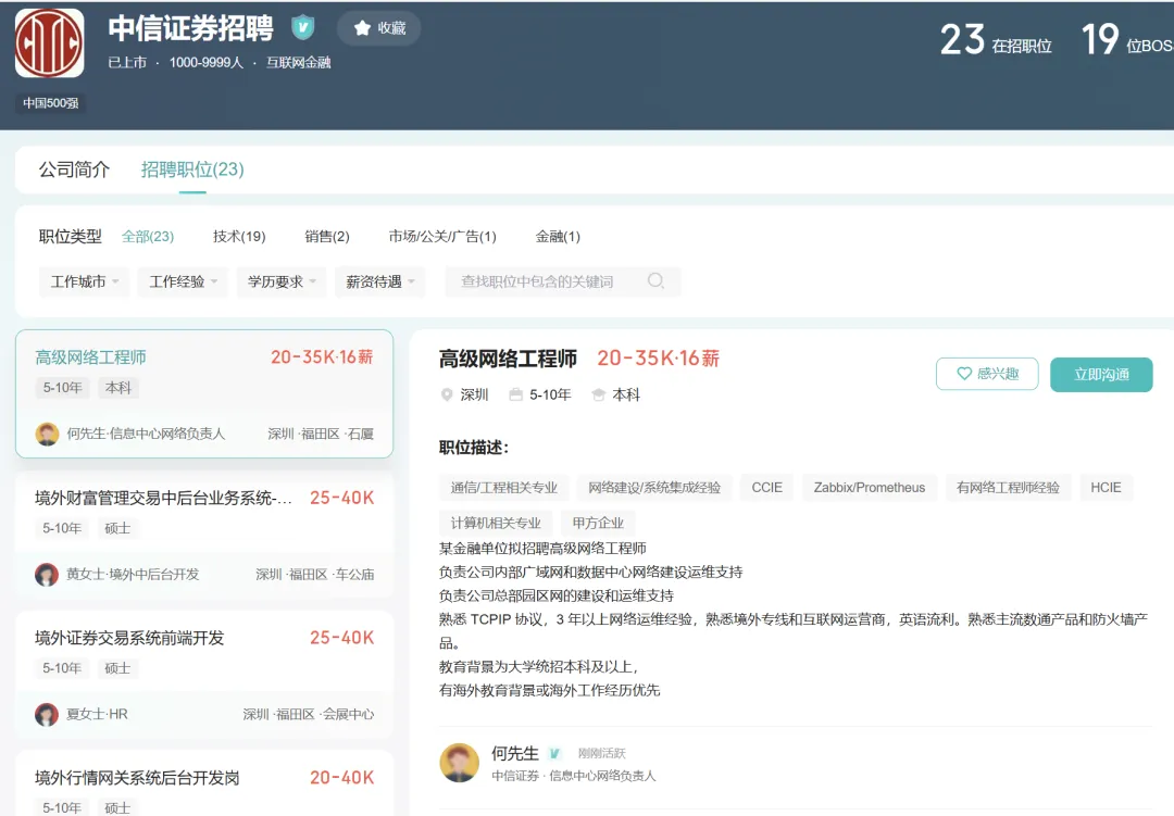 我们再把目光拉回国内。去看看国内顶级券商“中信证券”的招聘要求你就会发现,现在金融圈招的,大把大把都是技术岗。
