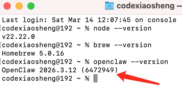 这里看到 Homebrew 和 Node.js 都已经安装成功,且能显示出版本号,这两是必须的前提条件。